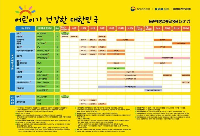 홈 > 예방접종안내 > 예진표 다운로드 예진표 다운로드; 국가필수예방접종의 대상 전염병, 백신종류및 방법, 0개월, 1개월, 2개월, 4개월, 6개월, 12개월, 15개월, 18개월, 24개월, 36개월, 만4세, 만6세, 만11. 2021.02.08 보도참고자료 2007년생 여학생은 올해 내 사람유두. 접종 후 접종장소에 20~30분간 머물러주십시오. 소에서 분리된 결핵균의 독성을 약화시켜 발병을 일으키지는 않고 결핵에 대한 면역력만을 갖게 하는 백신입니다.